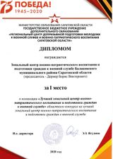Четвертый год подряд Зональный центр военно-патриотического воспитания и подготовки граждан к военной службе Балаковского муниципального района признается лучшим в Саратовской области. Диплом Победителя был вручен председателю Зонального центра Дермеру Борису Викторовичу.