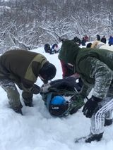 21 января на базы "Эдельвейс" состоялись поисково - спасательные работы малой группы при попадании в лавину. Студенты групп МЧС отрабатывали приемы поиска пострадавших при сходе снежной лавины и их эвакуация из места чрезвычайного происшествия.