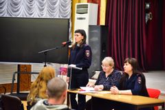 Следующим вопросом стала информационная справка, озвученная Шебановой Натальей Владимировной – майором полиции, старшим оперуполномоченным отдела по контролю за незаконным оборотом наркотиков МУ МВД РФ «Балаковское» Саратовской области. Наталья Владимировна описала признаки употребления подростками наркотических средств, а также о мерах профилактики преступлений в сфере незаконного оборота наркотических средств и психотропных веществ на территории Балаковского района.