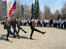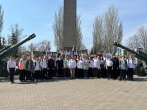 На минувшей неделе к акции присоединились студенты Губернаторского колледжа и учащиеся 7-х классов школы №25. Ребята посетили Обелиск балаковцам, погибшим в годы Великой Отечественной войны. Кадеты в составе знаменной группы продемонстрировали школьникам основные строевые приемы, в том числе элементы заступления Поста №1 и выноса Государственного флага РФ.