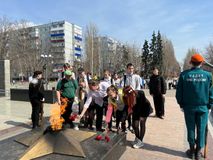 Участники акции промаршировали дружным строем, а в завершении возложили цветы к Вечному огню, отдав дань уважения погибшим на полях сражений.