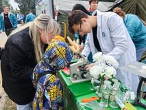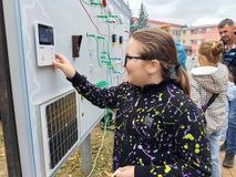 Студенты-электрики организовали практические занятия на учебном стенде по электромонтажу. Кроме того, с помощью компрессора они создавали для посетителей воздушные фигуры.