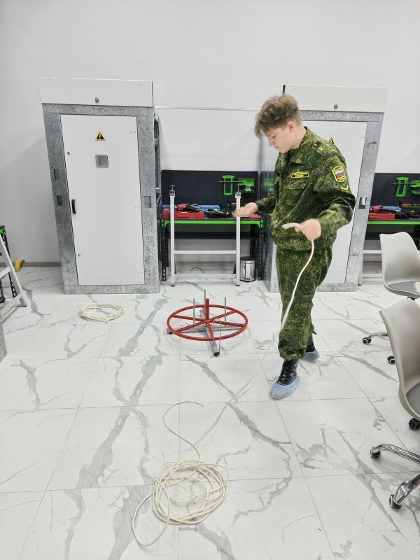 В практической части мастер-класса участники мероприятия самостоятельно под контролем преподавателя-наставника провели размотку кабеля при помощи устройства -размотчика кабеля, а также научились определять длину кабеля без его замера (размотки).