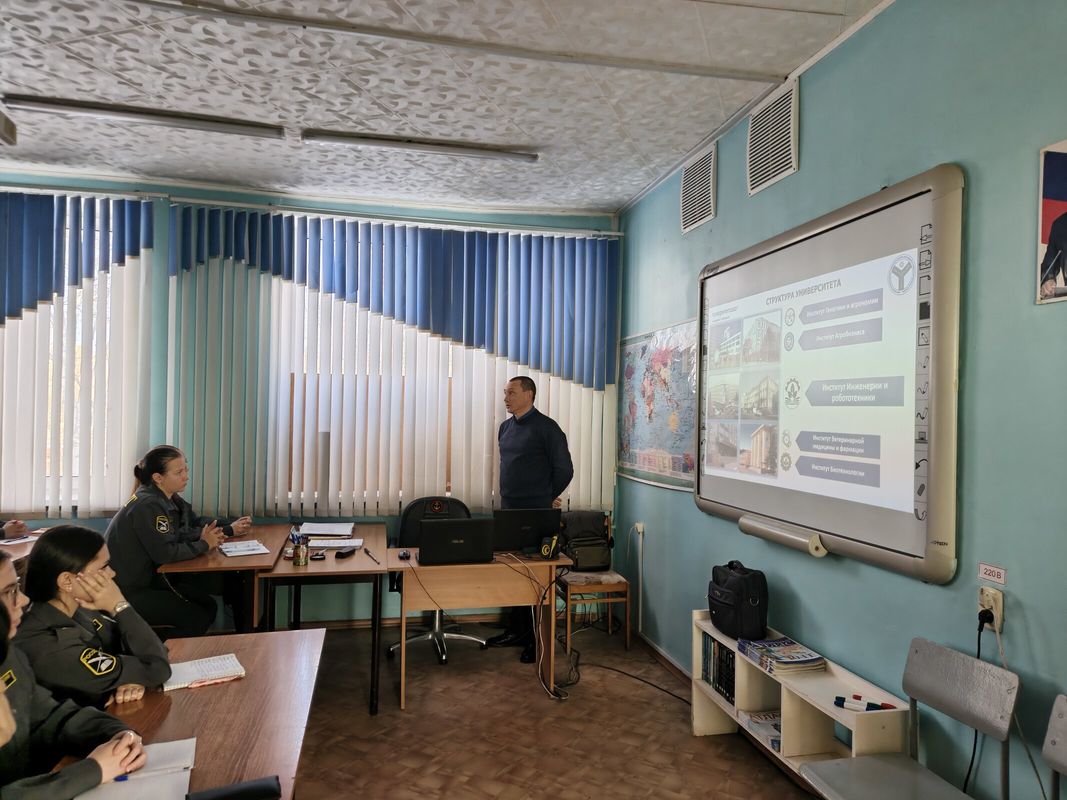 В ходе встречи заведующий кафедрой «Техносферная безопасность и транспортно-технологические машины» Русинов Алексей Владимирович подробно рассказал ребятам о направлениях подготовки и специальностях, которые можно получить в данном учебном заведении, правилах поступления, организации теоретического и практического обучения, досуга студентов, о стипендиальной системе, перспективах обучения и дальнейшего трудоустройства выпускников.