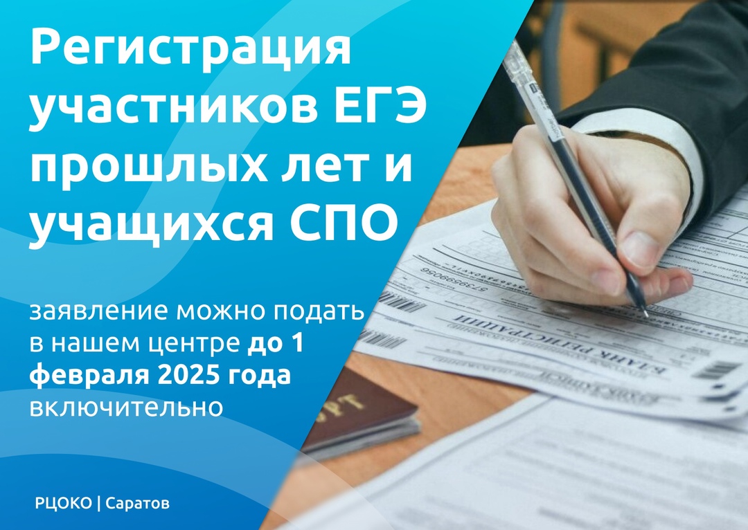 2 декабря 2024 года в ГАУ СО РЦОКО (г.Саратов, ул.Мичурина, д.89) стартует прием заявлений на сдачу ЕГЭ от обучающихся по образовательным программам СПО, не имеющих среднего общего образования; обучающихся, получающих среднее общее образование в иностранных организациях, осуществляющих образовательную деятельность, выпускников прошлых лет
