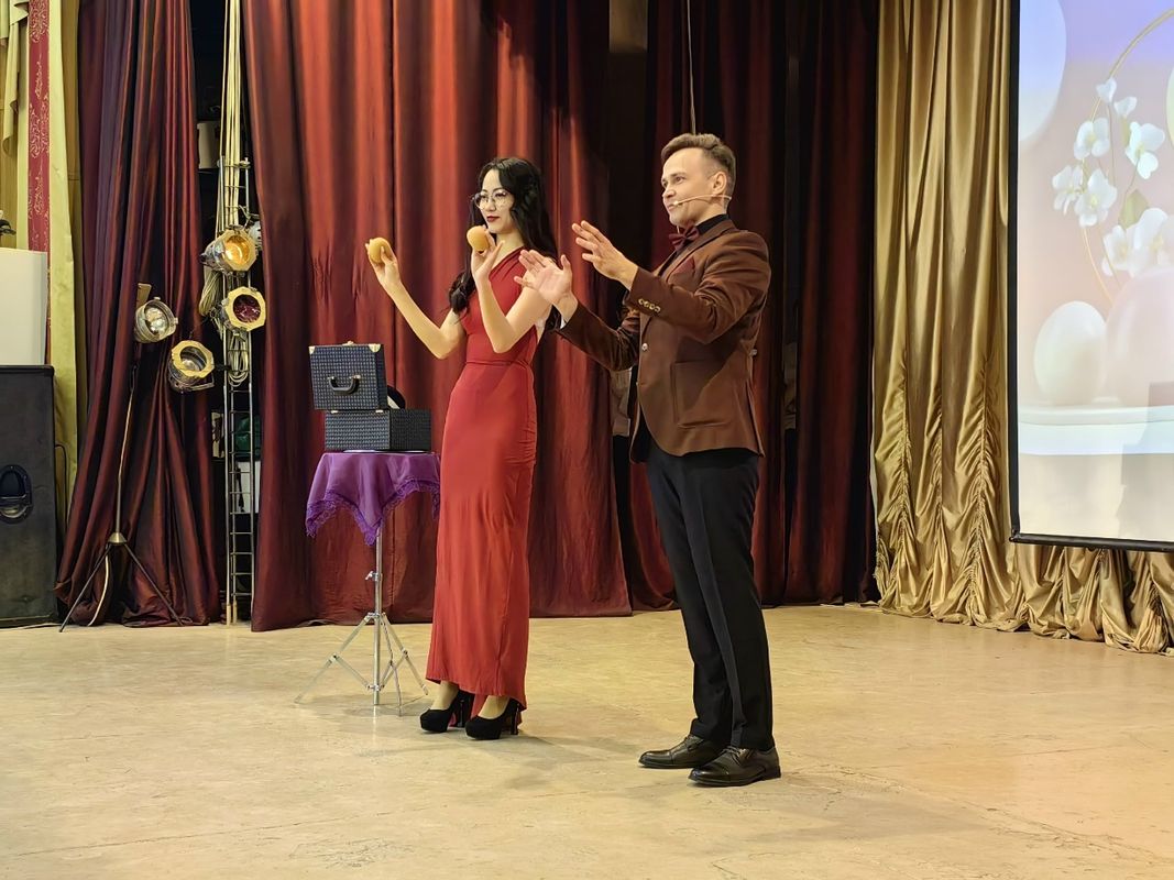 Настоящим сюрпризом для публики стал музыкальный дуэт преподавателя Владимира Федоровича Подолюка и мастера производственного обучения Дарьи Сергеевны Серебряковой. Их совместный номер был встречен искренними аплодисментами. Отдельных оваций также удостоился приглашенный гость праздника – фокусник Илья Кулицкий, чьи эффектные иллюзионные номера подарили гостям неподдельные эмоции.