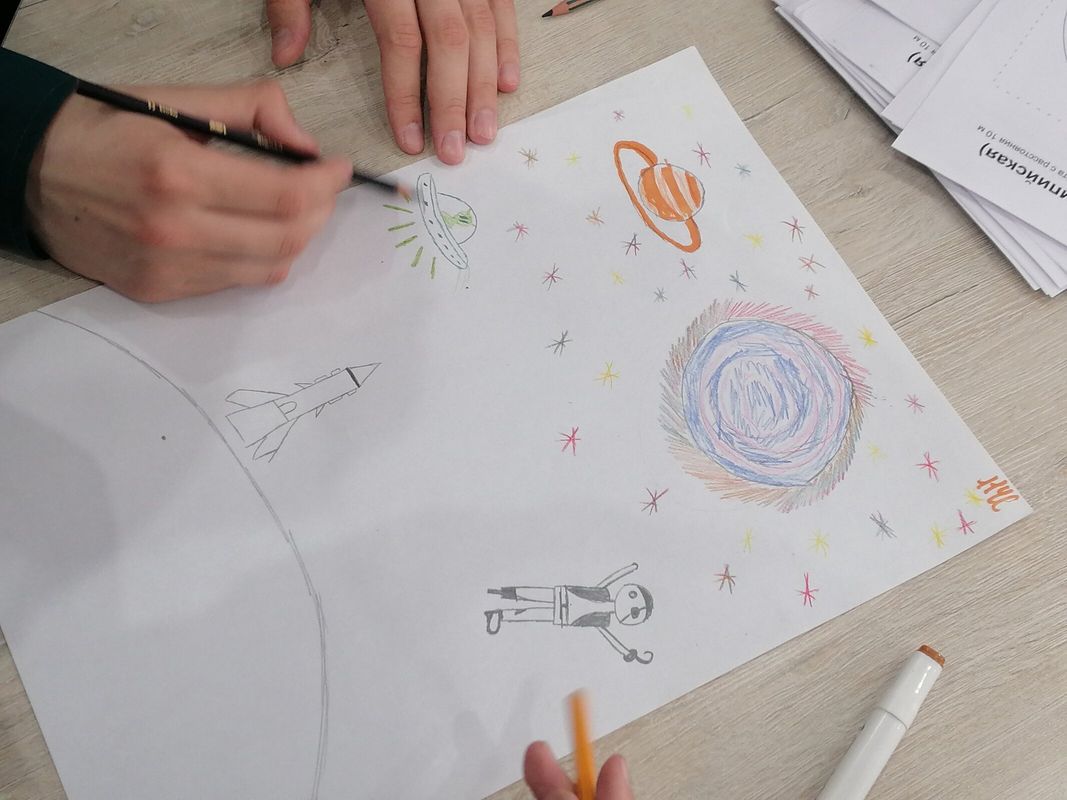 Участникам предложили создать ракету из подручных материалов — здесь проявилась фантазия и навыки конструирования. В следующем задании нужно было разгадать загадки и ребусы, связанные с космосом, — это проверило внимание, эрудицию и знание терминов. Особое внимание уделили творческому блоку: студенты нарисовали картины на тему «Космос — это…» и продемонстрировали не только умение рисовать, но и глубокое понимание темы. Завершился квест игрой в «Космический крокодил» — весёлое испытание на смекалку и командную работу.
